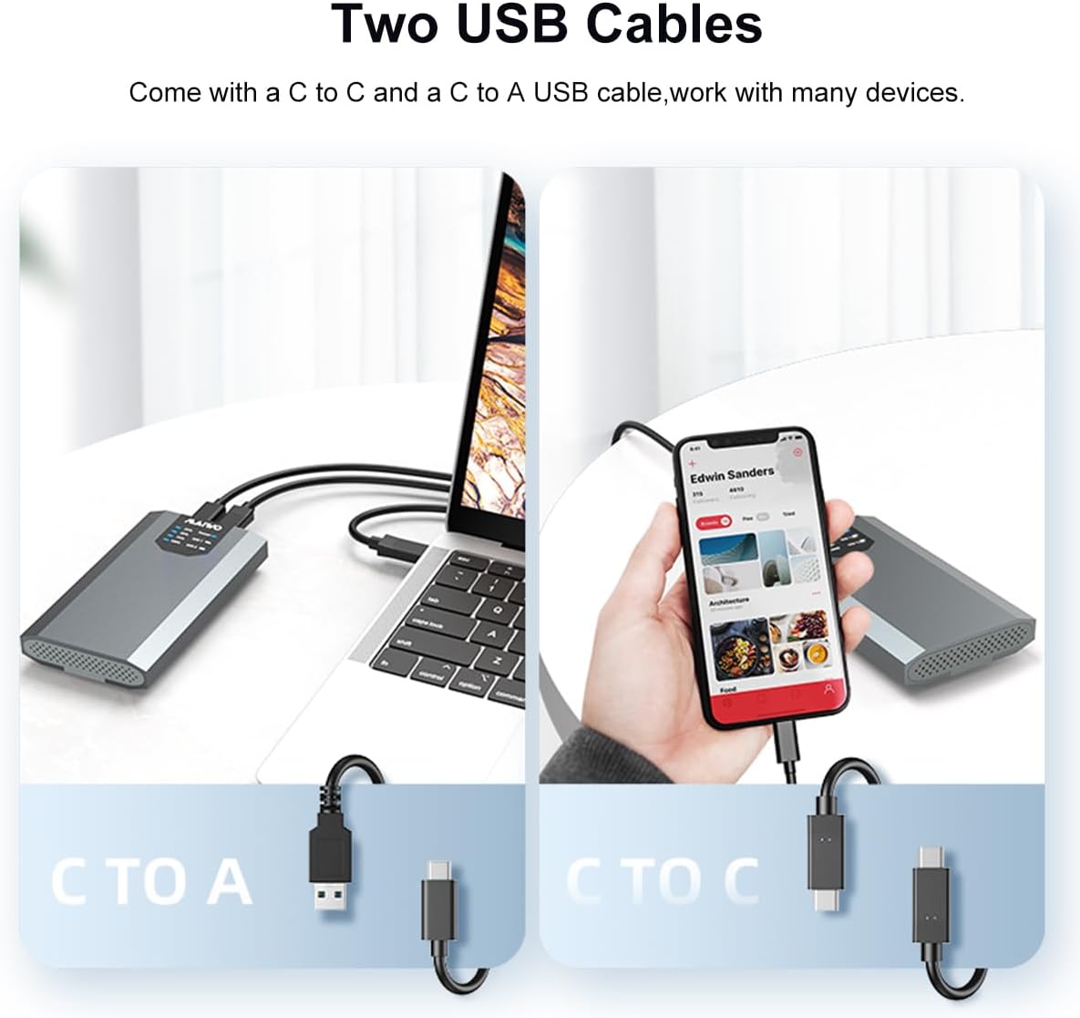 - Massive Capacity: This Dual M.2 NVMe SSD Enclosure can accommodate up to 8TB of storage across two M.2 NVMe SSDs.