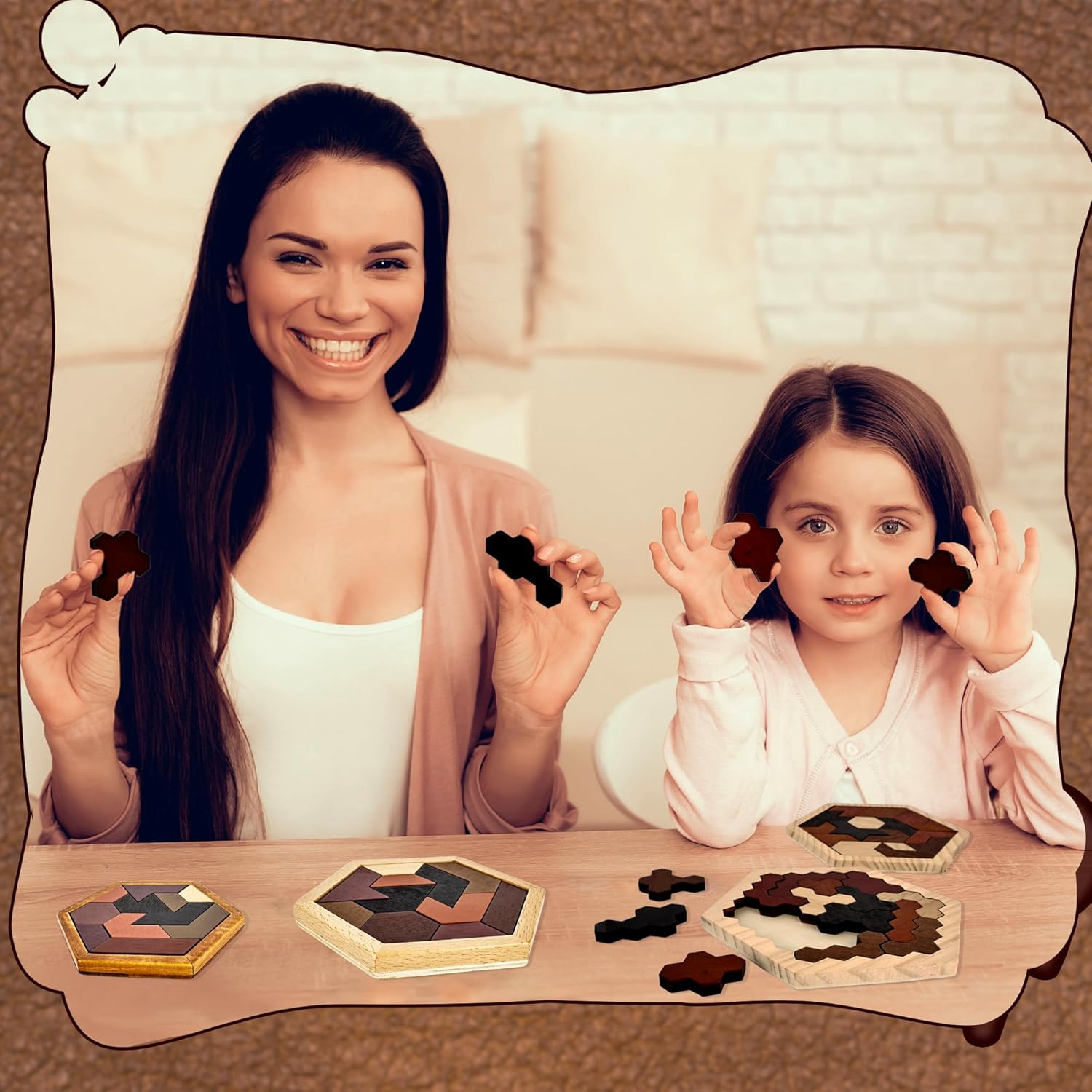 - 【Quality Material】: The wooden hexagon tangram puzzle is made of wood, the material is safe and reliable, no odor, the surface is smooth and burr-free, comfortable to touch, sturdy and durable, not easy to crack and fade, ensuring a long gaming experience at home and on the go