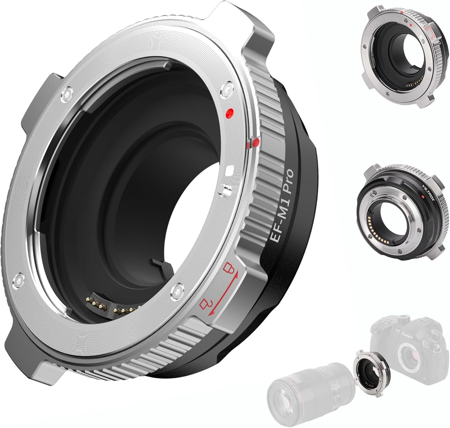 - 【Wide Compatibility】VILTROX EF-M1 Pro mount adapter is compatible with EF/EF-S series lens to be used Micro 4/3 series cameras: GH5 GH4 GH6 GH5S GF5 GF1 GX9 G9 GX7 GF7 GM5; Olympus OM-D E-M1 II, E-M5 III, E-M10 III; BMPCC4K, Z CAM E2; Please contact us if you’re unsure whether this lens adapter ring fits your camera.
