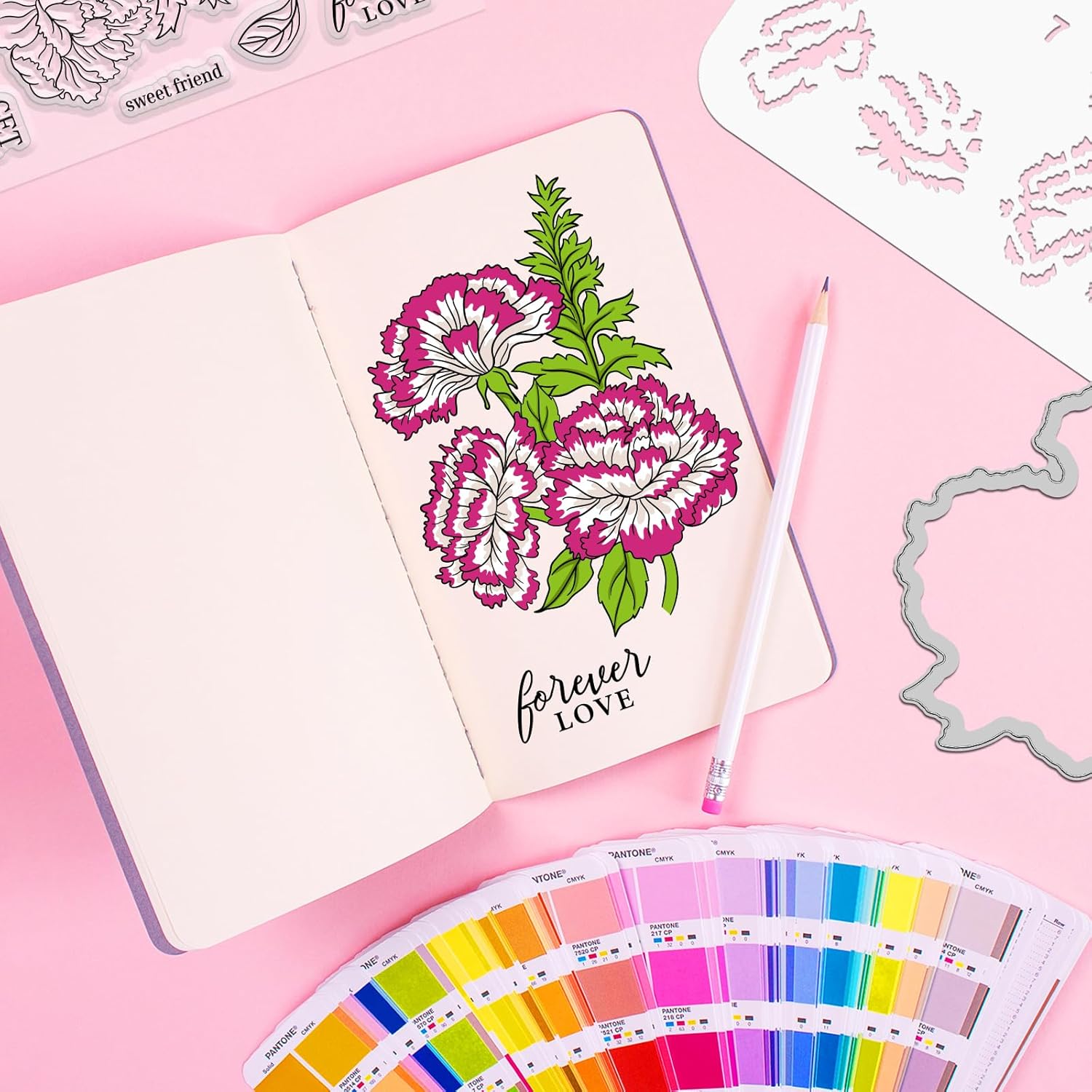 - Package Includes: You will receive 1 sheet clear stamps(6.3x4.33inch) with Dianthus and leaves, 1 set cut dies for cutting flowers and leaves shapes, and 2 pcs PET stencils for creating color layering effects. The whole set can meet your DIY craft needs