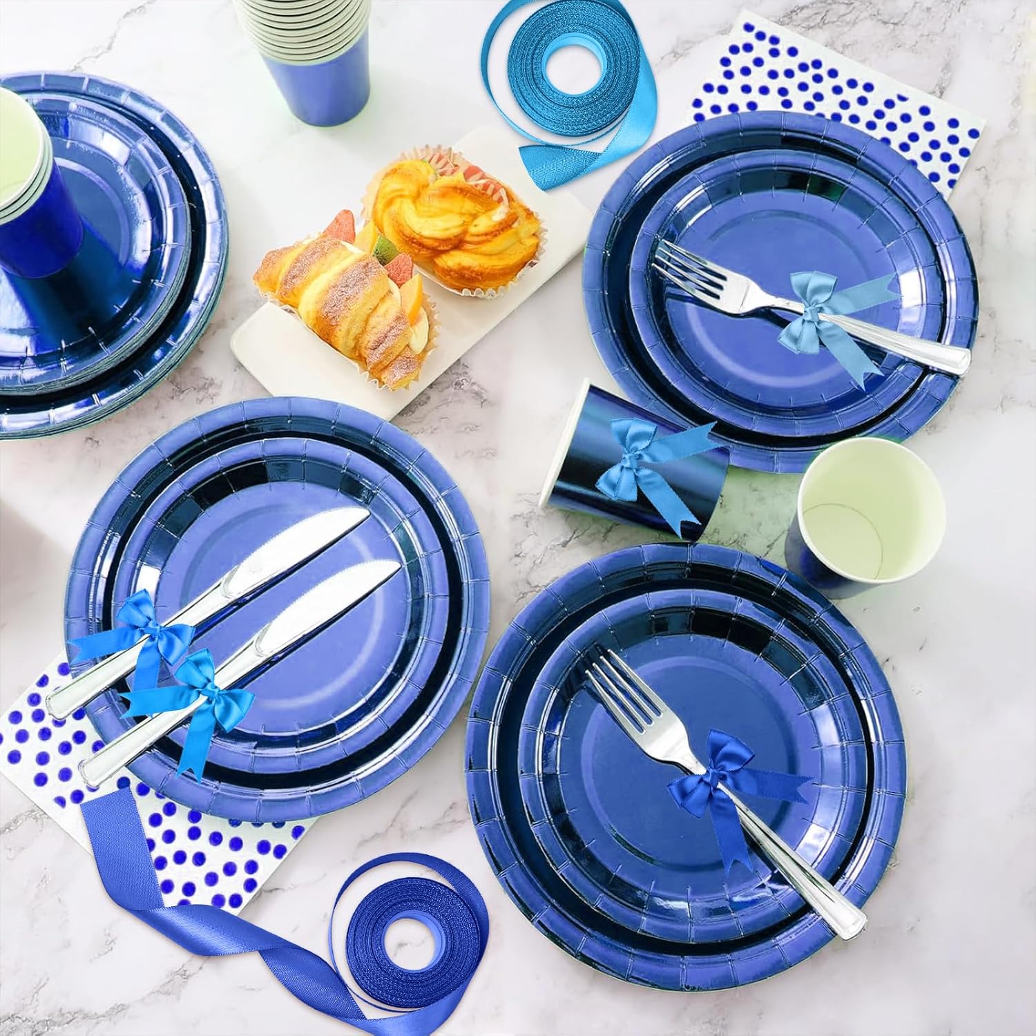 - 【What's Include】:6 rolls 1-1/2 inch wide single-faced blue ribbon measures 10 yards (30 feet) each roll, 60 yards (180 feet) in total