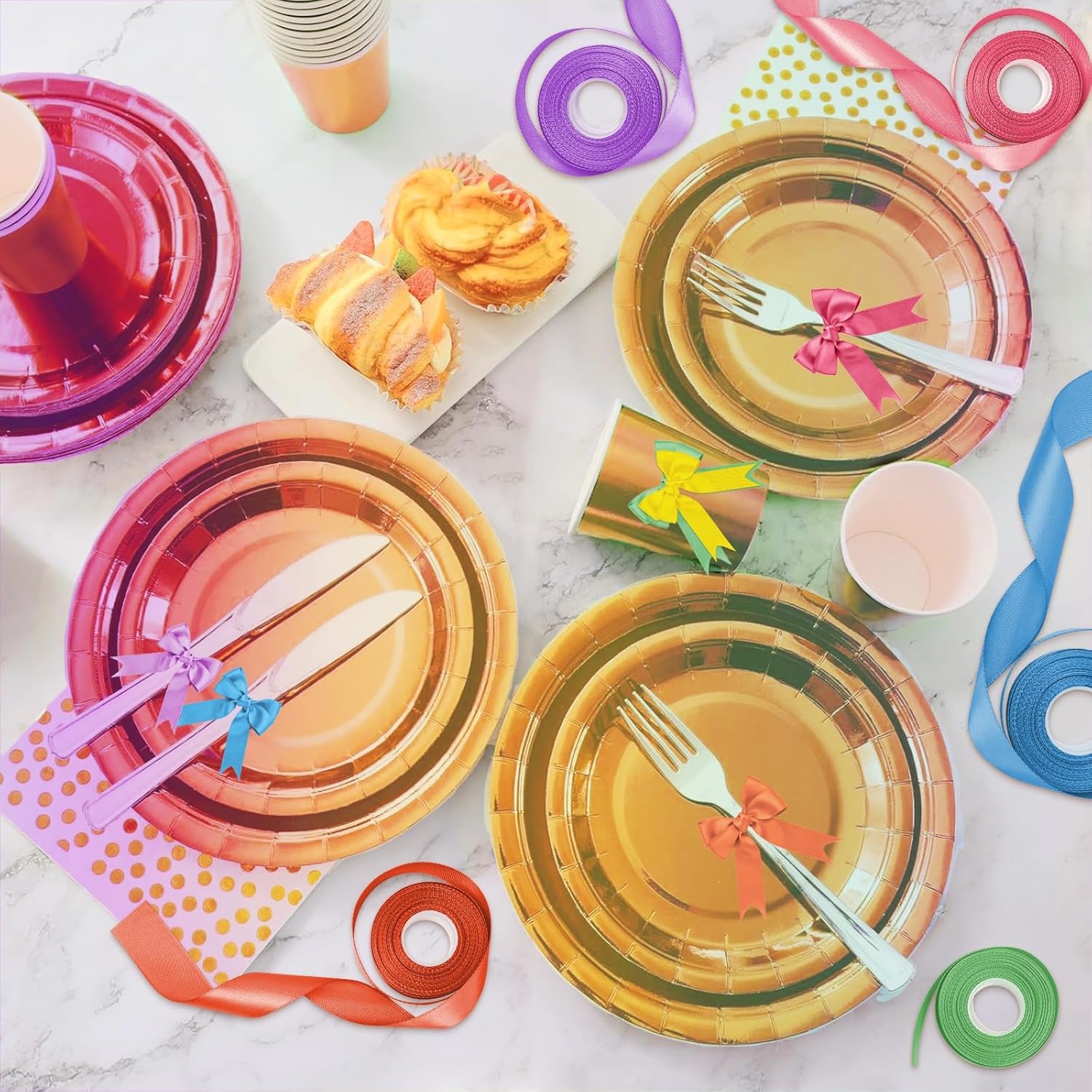 - 【What's Include】:6 rolls 1-1/2 inch wide single-faced colorful rainbow ribbon measures 10 yards (30 feet) each roll, 60 yards (180 feet) in total