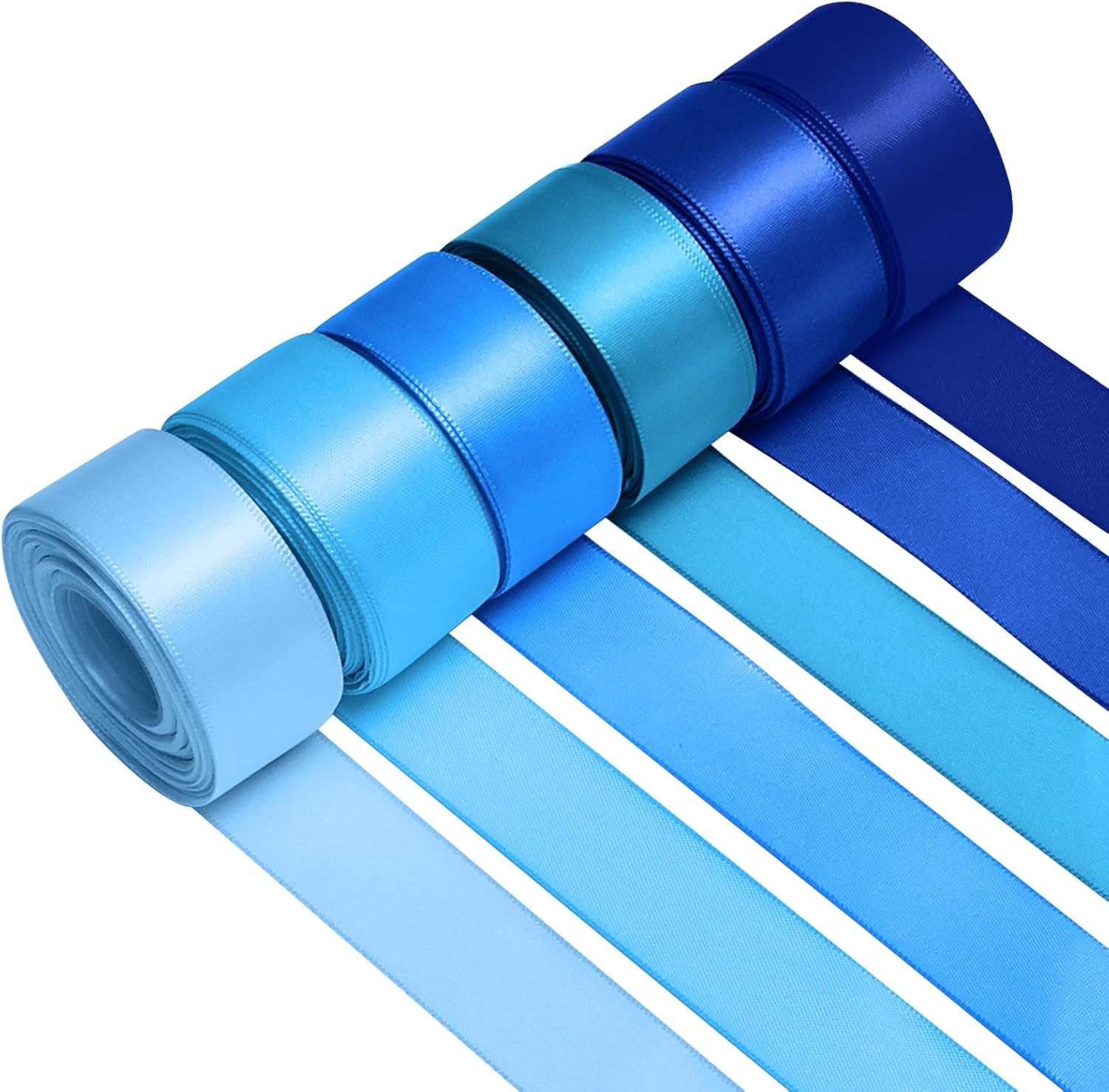 1 Inch Blue Satin Ribbons for Crafts, 6 Rolls Single-Faced Blue Assorted Ribbons for Gift Wrapping Flower Bouquet Wedding Invitations Bridal Shower Hair Bows Garland Party Decor