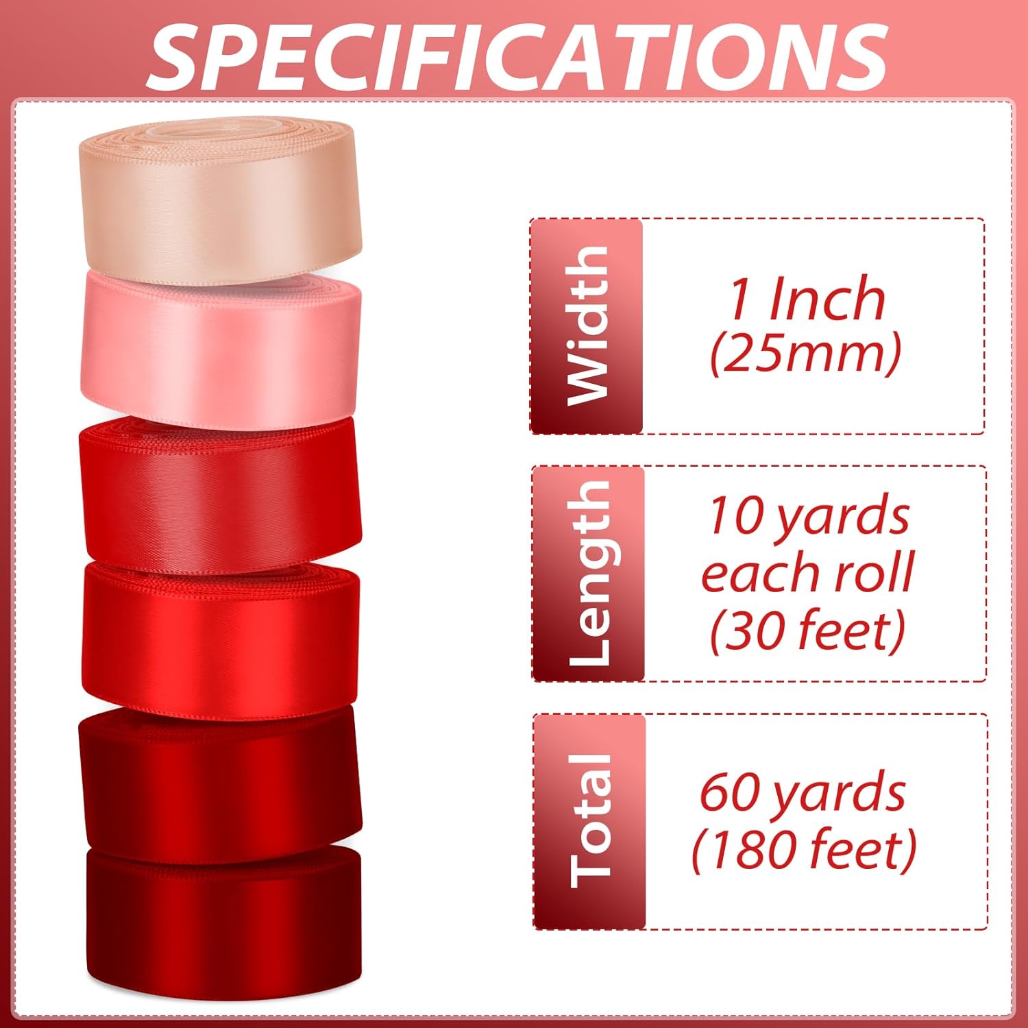 - 【What's Include】:6 rolls 1 inch wide single-faced red ribbon measures 10 yards (30 feet) each roll, 60 yards (180 feet) in total
