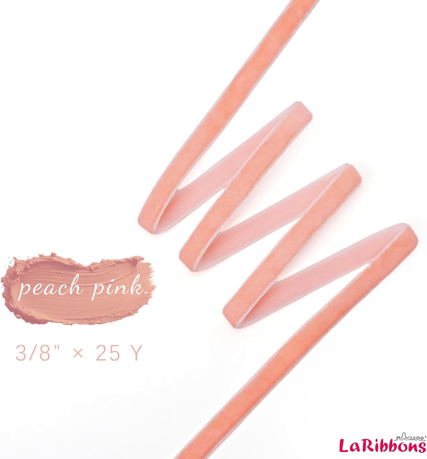 LaRibbons Thin Velvet Ribbon 3/8 Inch x 25 Yards, Peach Pink Velvet Ribbon for Christmas Tree, Gift Wrapping, Wreath Bow, Outdoor Decoration