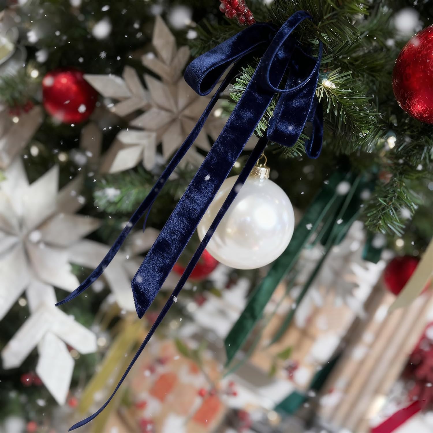 LaRibbons Thin Velvet Ribbon 1 Inch x 25 Yards, Navy Velvet Ribbon for Christmas Tree, Gift Wrapping, Wreath Bow, Outdoor Decoration