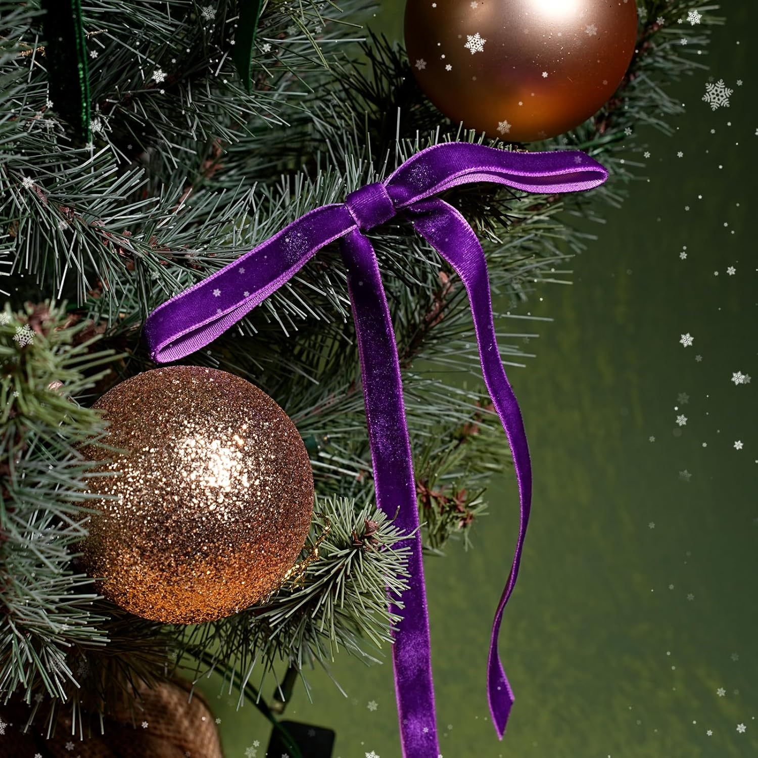 LaRibbons Thin Velvet Ribbon 3/8 Inch x 25 Yards, Purple Velvet Ribbon for Christmas Tree, Gift Wrapping, Wreath Bow, Outdoor Decoration