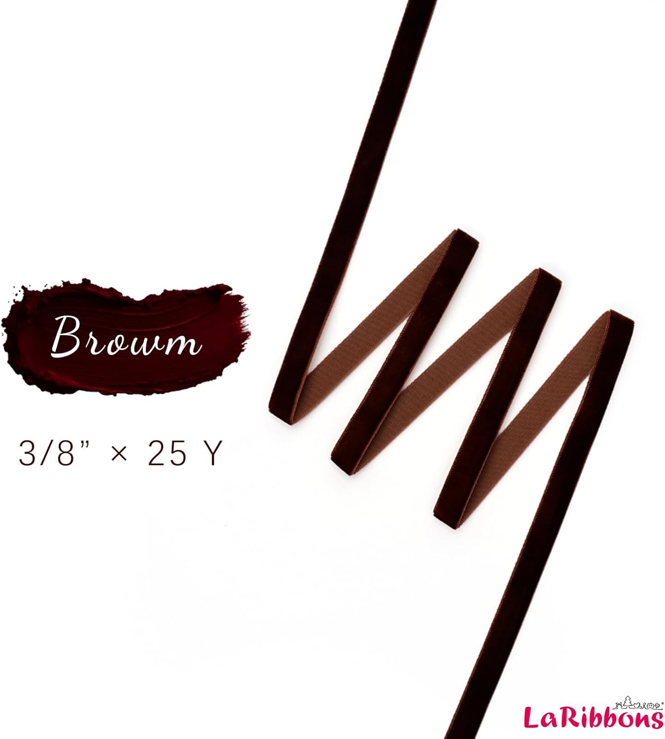 LaRibbons Thin Velvet Ribbon 3/8 Inch x 25 Yards, Brown Velvet Ribbon for Christmas Tree, Gift Wrapping, Wreath Bow, Outdoor Decoration