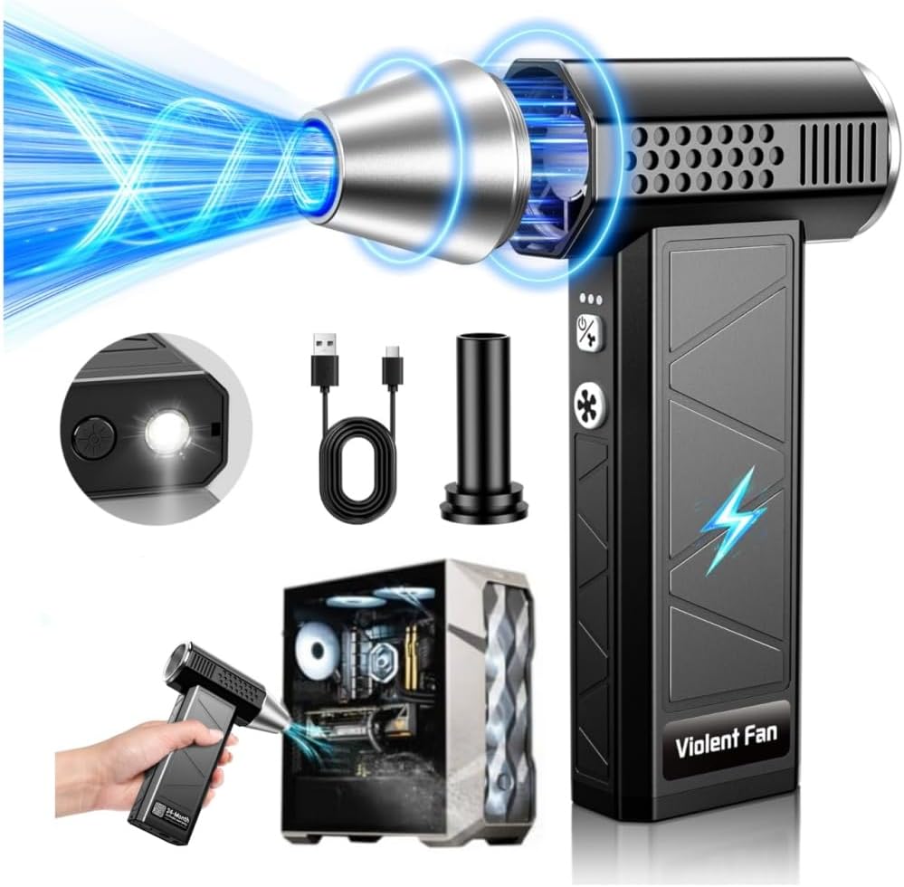 - 【Reuse and Cost-Efficiency】: Upgraded to metal materials, the super power turbo fan offers a long battery life and can be reused more than 500 times. It's a sustainable and economical alternative to single-use compressed air cans, much better choice for your wallet and the planet.