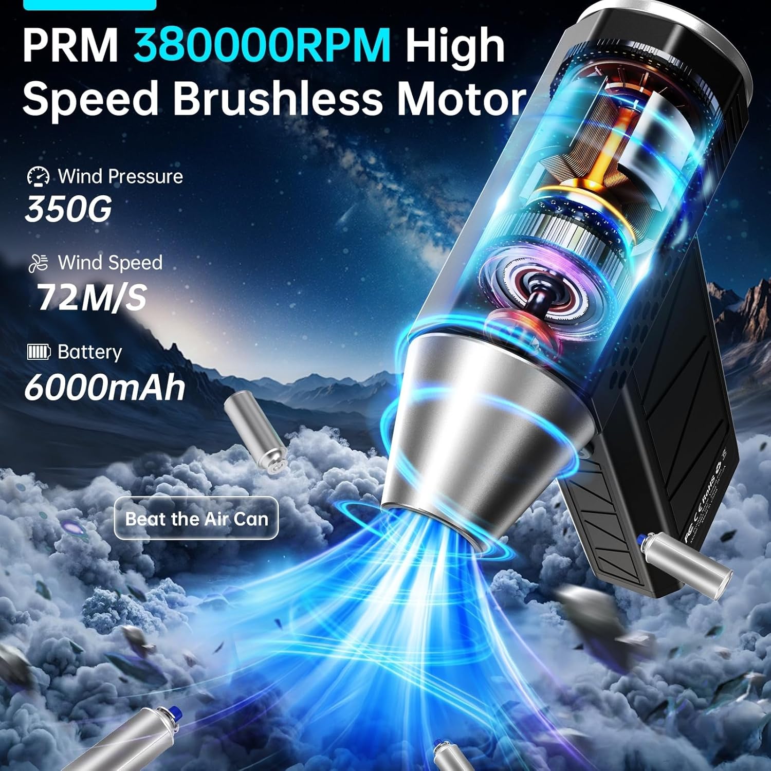 - 【2-Hour Fast Charging】: The rechargeable air duster comes with USB-C fast charging cable charging and fully charges in just 2 hours. The Small handheld air duster has a built-in 6000mAh battery, which provides up to 120 minutes of runtime on the first gear ,designed for deep cleaning.