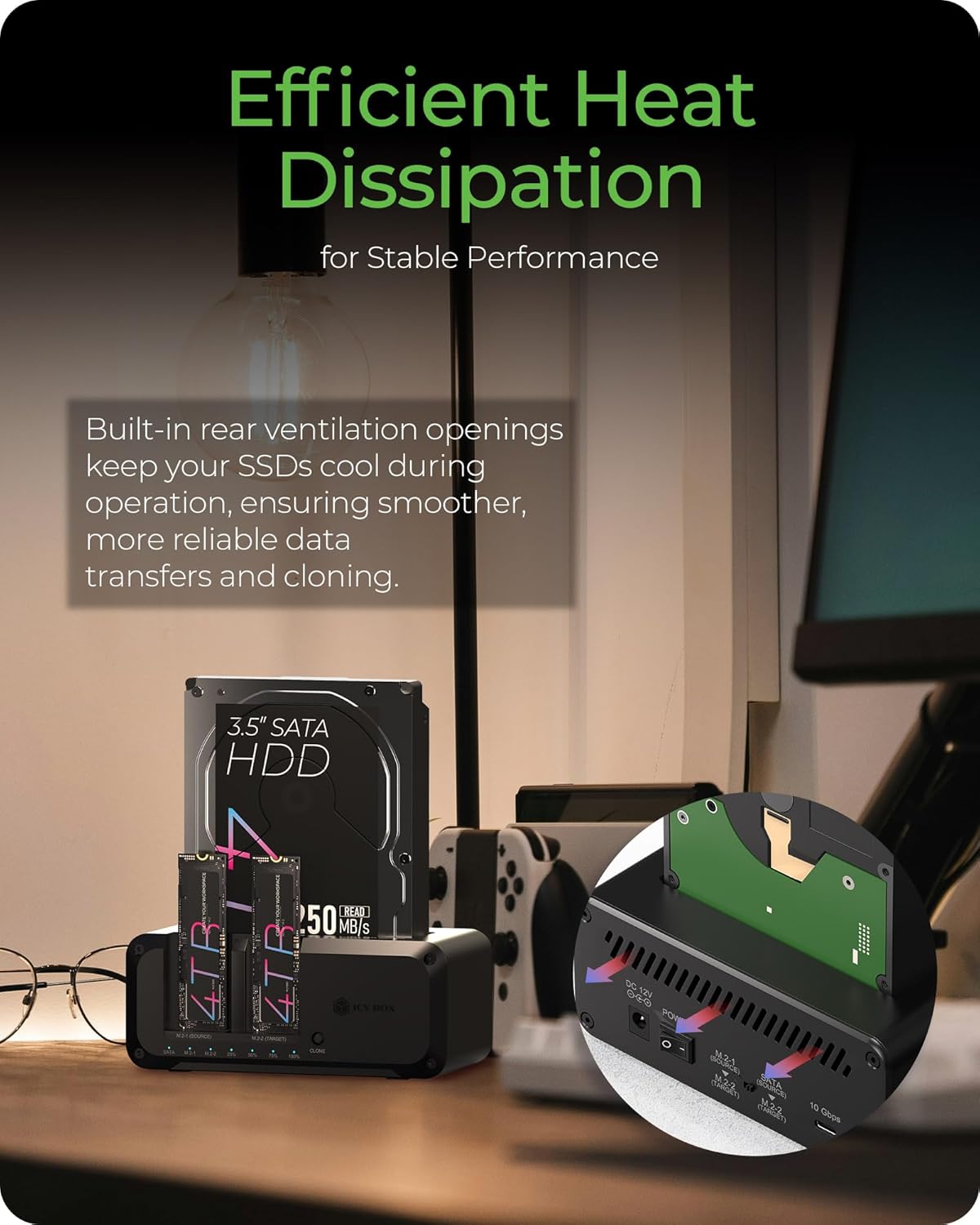 M.2 NVMe & SATA SSD/HDD Hard Drive Docking Station, ICY BOX USB-C 10Gbps NVMe Cloner&Reader, TripleBay Hard Drive cloner for 2.5"/3.5" SSD&HDD Hard Drives, Offline Cloning, Tool-Free (3 Bay)