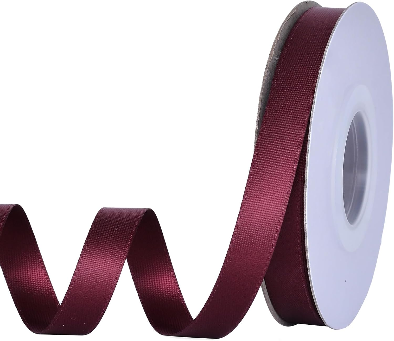 YAMA Burgundy Double Faced Satin Ribbon 1/2 Inch 25 Yards Burgundy Fabric Ribbon for Gift Wrapping Crafts Hair Bows Wedding Party Christmas Decoration