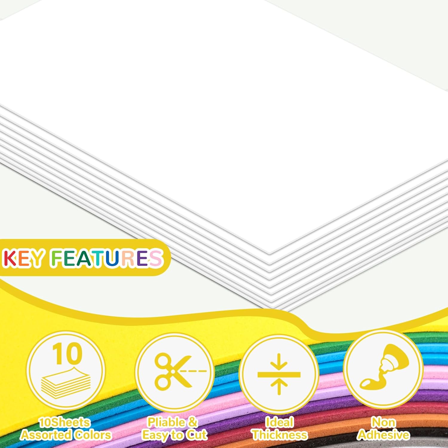 10 Pack Foam Sheets Craft 8 x 12 inch, Eva Color Foam Paper for Art Crafts Projects, Classrooms Scrapbook Gift DIY Cutters Card Party Decoration (White)