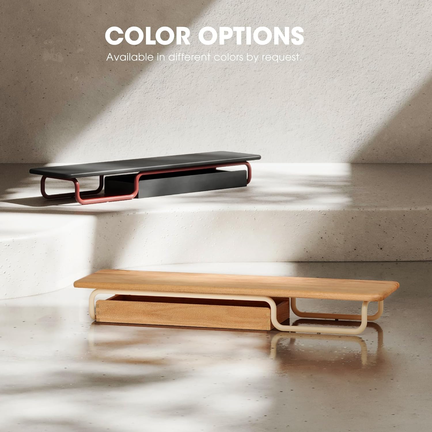 - 【Large Capacity Drawer】The computer riser features a slide-out drawer (20.3”L x 7.3”W x 2.6”H) to store cables, pens, or office accessories discreetly. Fits perfectly under a 37-inch desktop and compatible ultra-wide or dual monitors.
