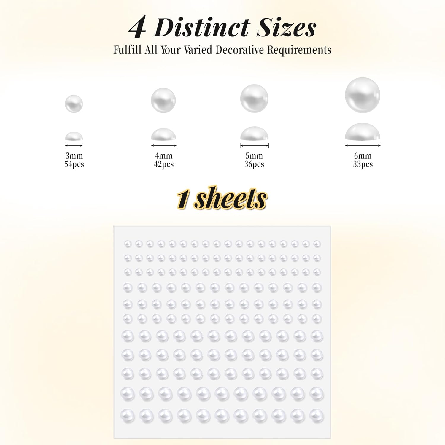 - Multi-size combination:Each sheet comes in four sizes of flat back pearls, 3mm/4mm/5mm/6mm (0.12 inch /0.16 inch /0.2 inch /0.24 inch), the number and size are enough to satisfy you the demand of all kinds of make-up and craft project