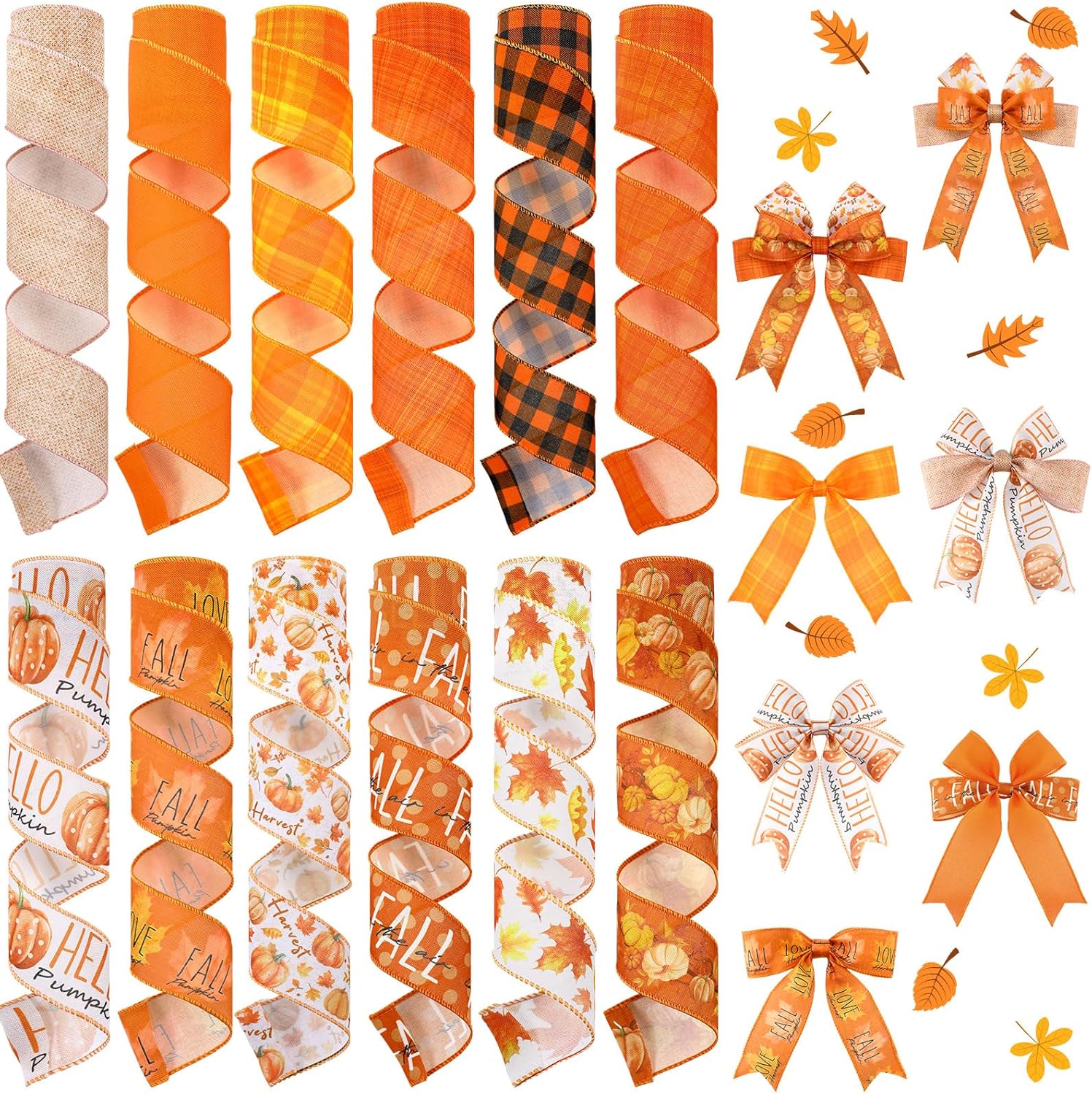 - Fall Ribbon Bulk: the package includes 12 rolls of autumn ribbons, each in different styles, enough quantity for your decorating needs, each ribbon measuring approx. 4.92 yd/ 4.5 m in length and approx. 1.97 inches/ 5 cm in width, ideal for your home and party DIY needs