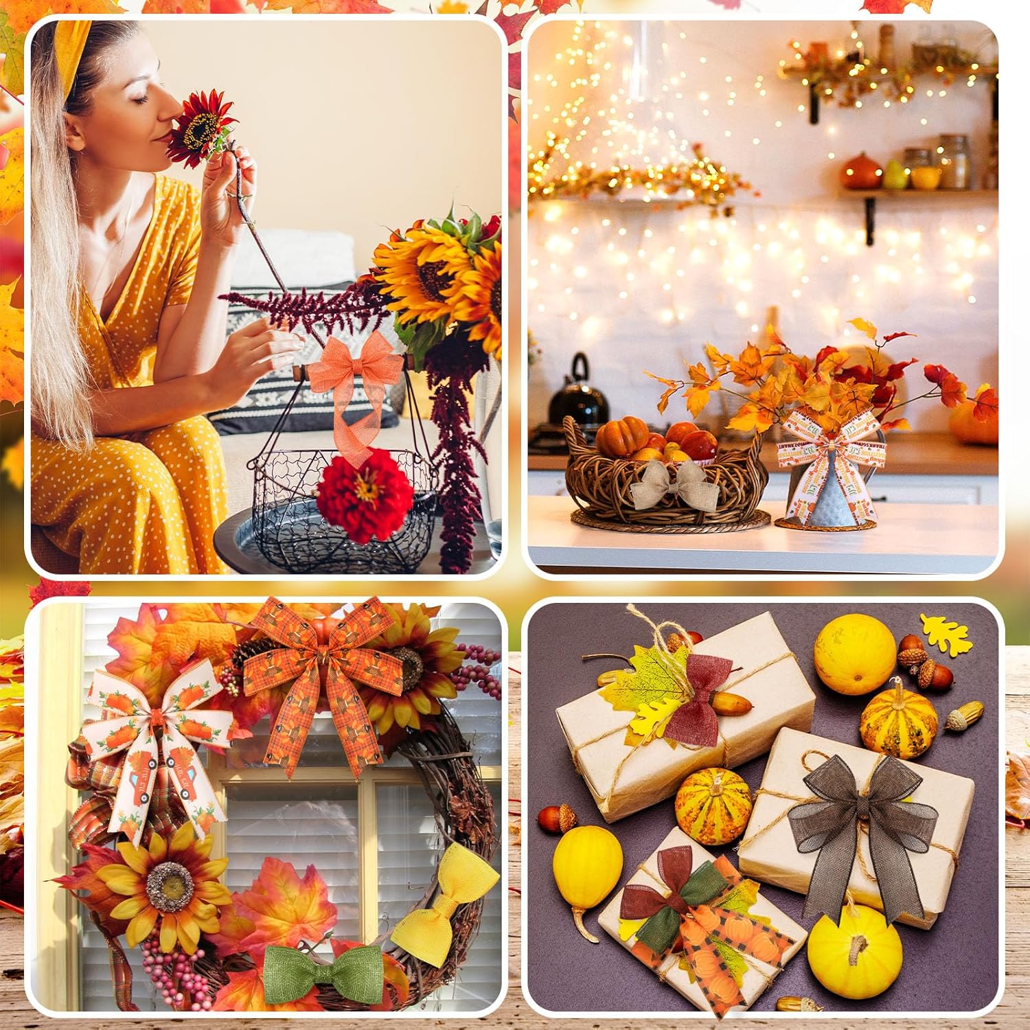 - Versatile DIY Compliant: unleash your creativity and innovativeness with our ribbons; Ideal for DIY projects, the fall ribbon allows you to decorate a variety of arts and crafts, such as packaging gift boxes, decorative garlands, flowers, vases, cakes, home furnishings, DIY crafts and more