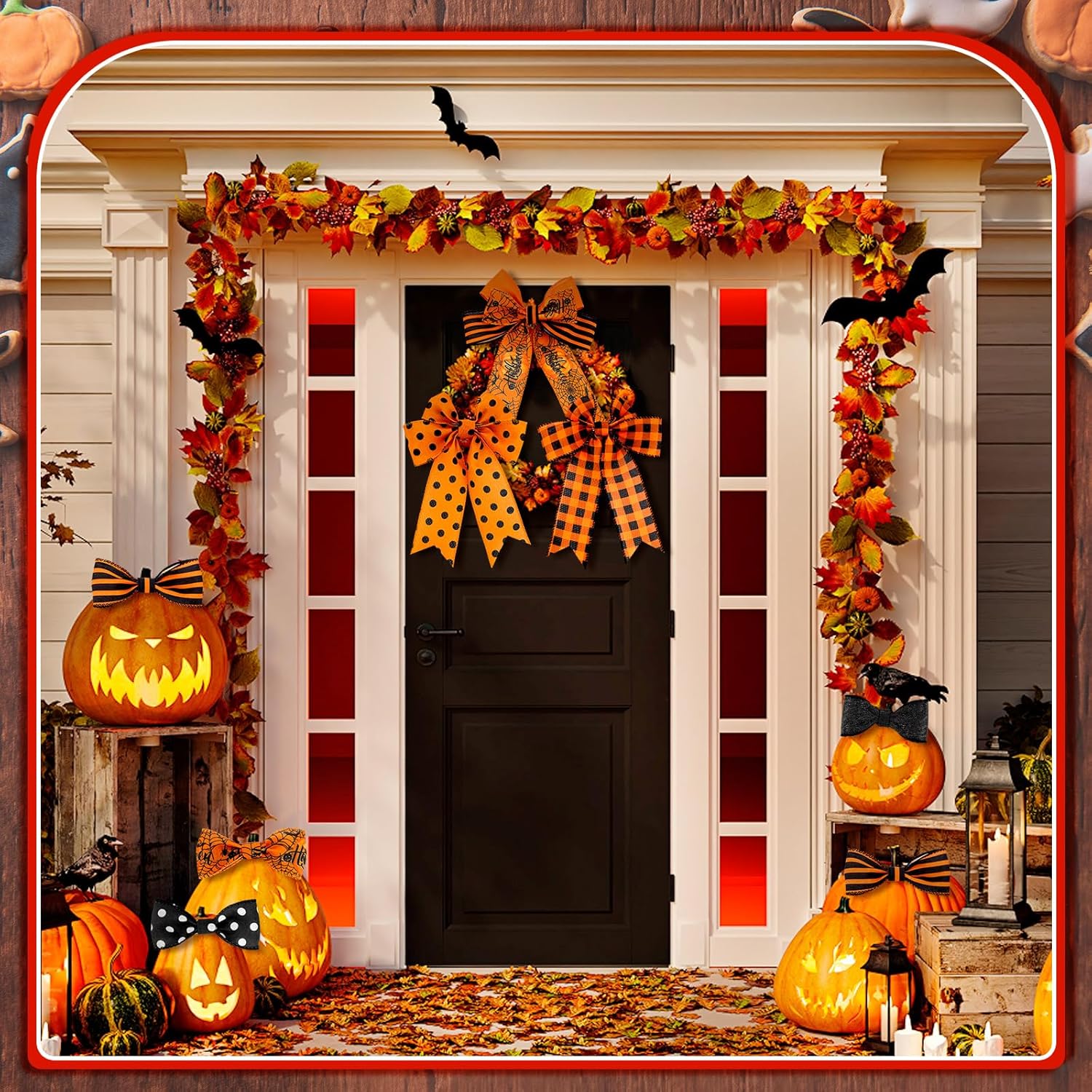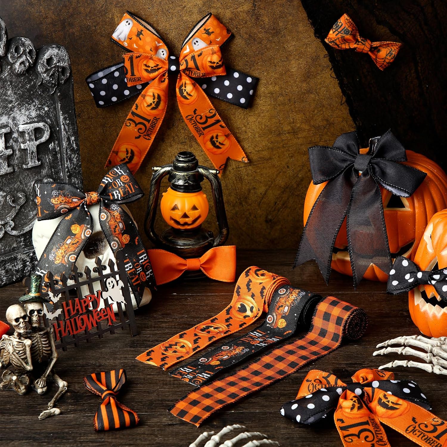 - Create Halloween Table Festive Spirit: our wired ribbon is the delicate accessory to elevate your Halloween decorations; Whether you're adorning your front door, staircase, tables, stairs, railings, candles, lights, trees or even creating your own Halloween inspired centerpieces, our ribbon will add a festive touch to many spaces