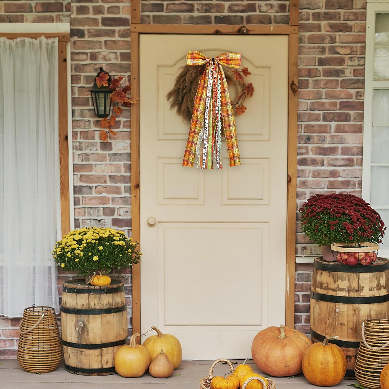 - Fall Theme: Our autumn check burlap bow is a perfect decoration for farmhouse, which can easily provide a festive touch to your fall holiday decor.