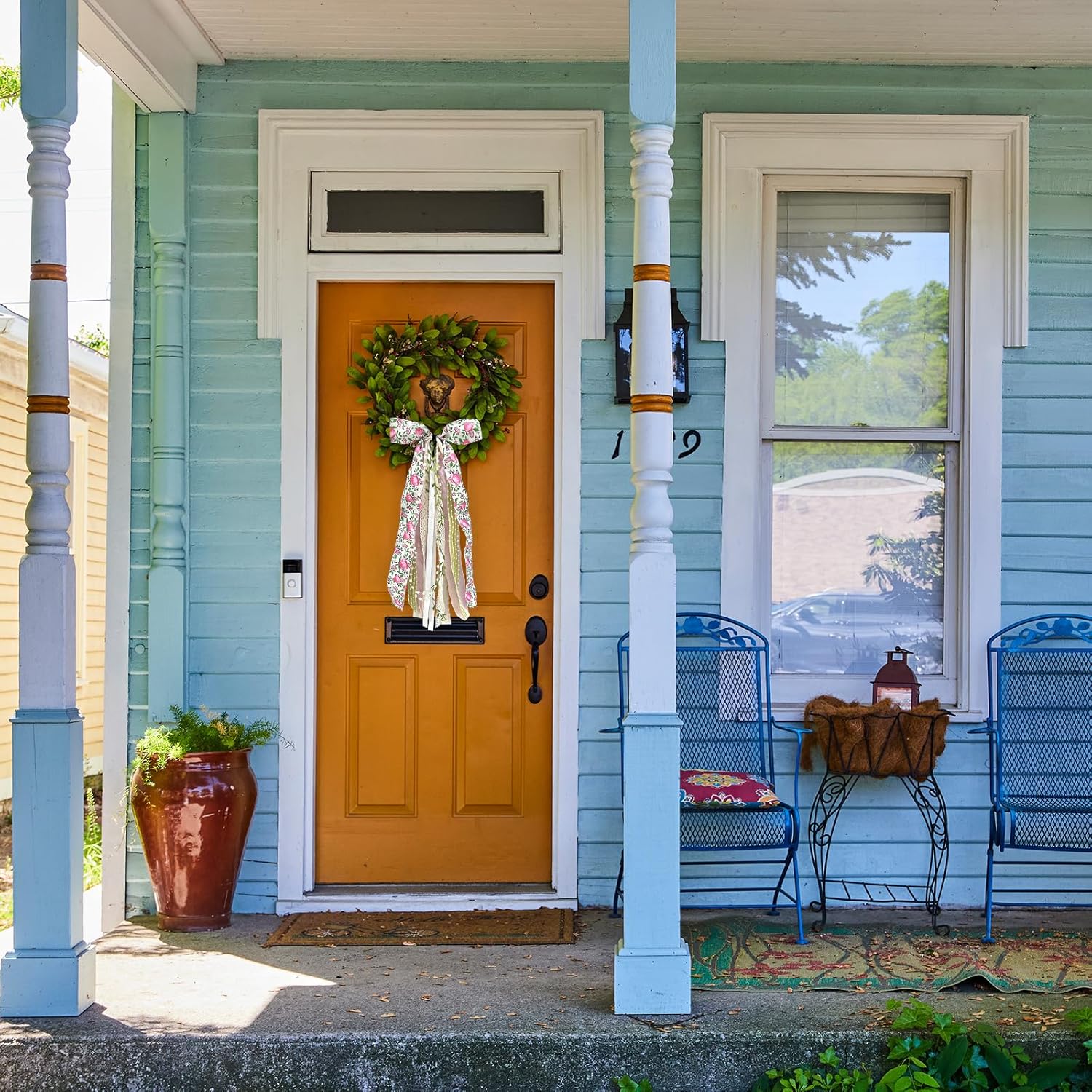 - Easy Hanging: Our large ribbon bow come equipped with a clip on the back, you can hang easily on windows, doors, wreaths, banisters, fences, trees, porch, garland, yard, posts, swags, mentals, and so on. Both outside decorating and inside decorating are suitable.