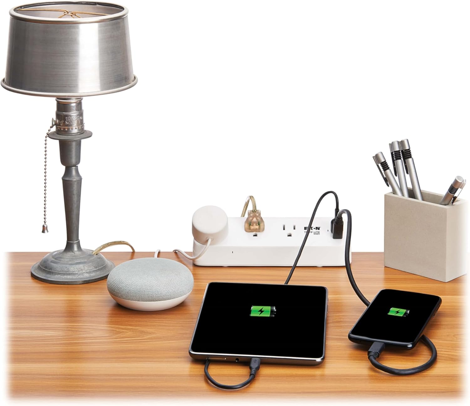 Eaton Tripp Lite Series Desk Clamp Power Strip Surge Protector, 3-Outlets, USB-A & USB-C Charging Ports, 900 Joules, 8ft Braided Flat Extension Cord, Lifetime Manufacturer's Warranty (TLP308U20CLAMP)