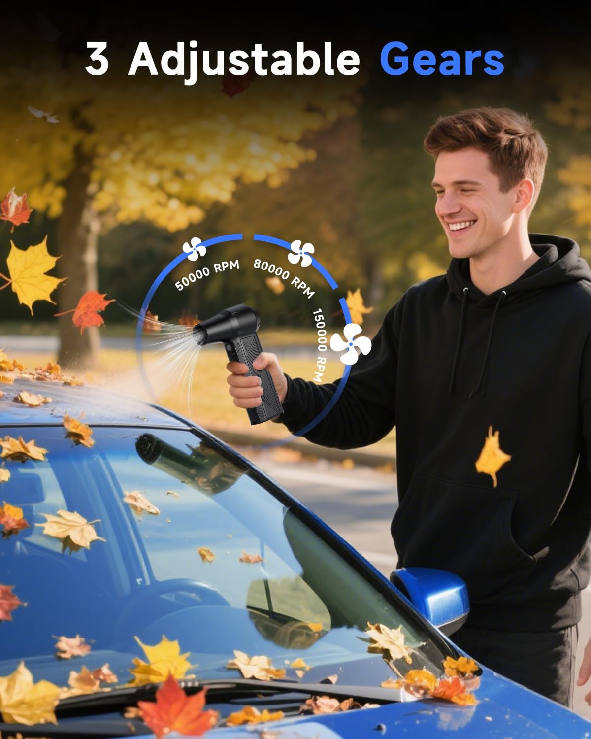 - 【Compact & Portable Design】Weighing only 0.6 lbs, this mini air blower is ergonomically designed for one-handed use and easy portability. Take it anywhere—home, office, car, or travel—and enjoy the cleaning convenience of an air gun blower without bulky equipment.