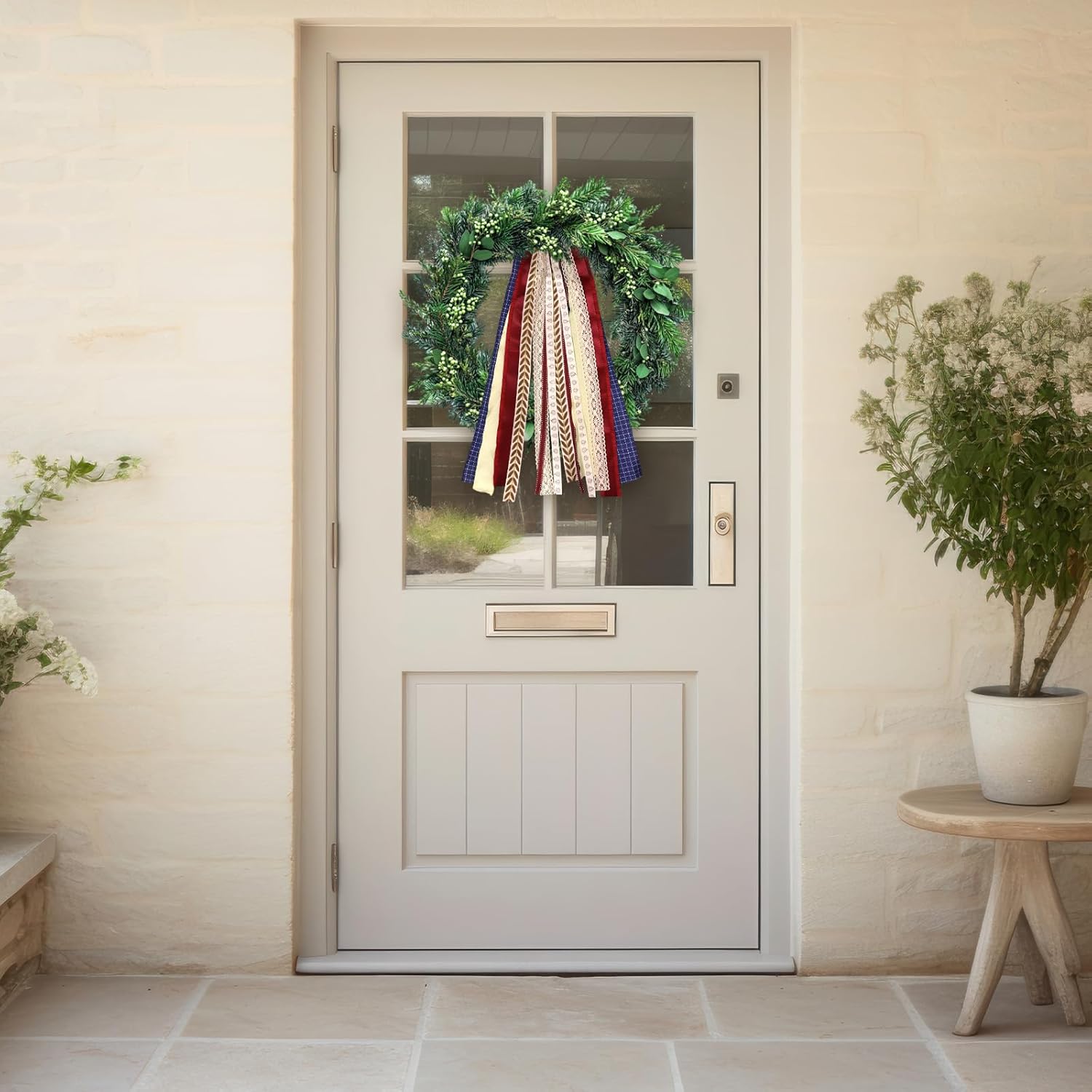 Large Blue Buffalo Plaid Ribbons Bow for Wreath, Red Orange Fall Fabric Ribbons Set Assorted Lace Ribbon Navy Clip-On Wreath Sash Ribbon Bundle for Thanksgiving Home Indoor Outdoor Decor