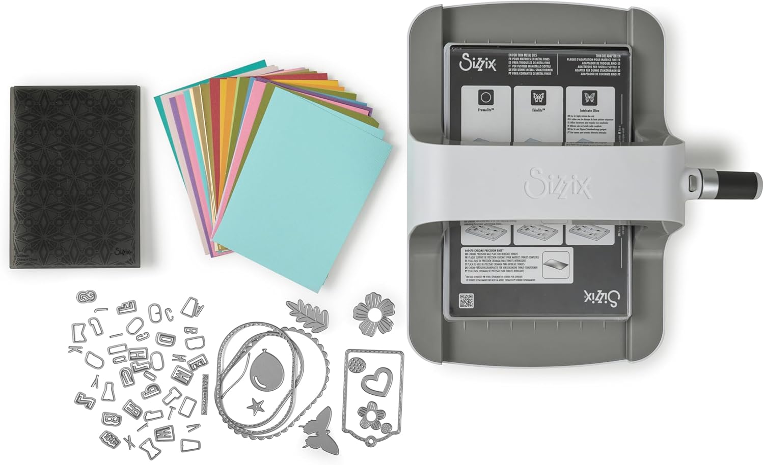 Sizzix Big Shot Machine with Starter Kit, 6" Die-Cutting and Embossing Machine with Cutting Dies, Embossing Folder and Cardstock