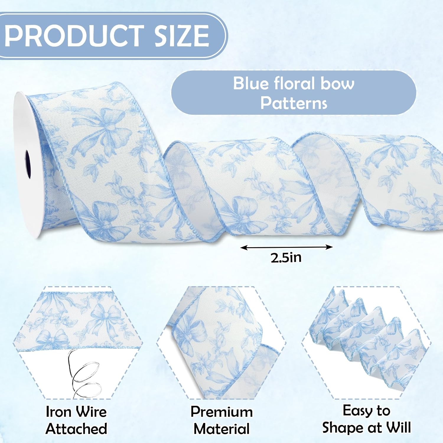 - CHIC DESIGN: Our ribbon is patterned with blue flowers and bows against the white background, aesthetic and elegant, great decoration for various occasions